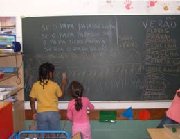 (2) A literacia passou também a surgir de um modo mais enquadrado. Depois da intervenção, como os materiais e suportes disponibilizados eram diversifcados e dequados a cada contexto, isso permitia um melhor enquadramento e adequação das actividades e acções desenvolvidas. As crianças tinham áreas distintas, estando algumas muito direccionadas para a linguagem escrita (escritório, correio, casinha, biblioteca…), proporcionando referenciais claros onde os suportes de leitura e escrita nelas existentes forneciam pistasclaras para a sua exploração de modo concreto, aprofundado e contextualizado.