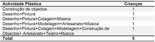 Para além destas opções, alguns sujeitos ainda acrescentaram por escrito no item "outras" algumas impressões que caracterizam outros traços no modo como as crianças se apresentavam e do que adquiriam no exercício das actividades artísticas, tais como: entusiasmo, criatividade, auto-conhecimento e sentido estético.