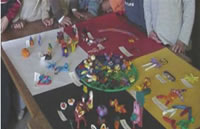 A proposta das crianças da Sala de Estudo do 1º ano (Barcelos) para construírem um painel de plasticina sobre os DC permitiu-nos compreender as imagens e concepções de direitos que as crianças têm e compreender as relações complexas e dinâmicas entre as crianças durante a construção do painel, o que se pode caracterizar como um mapa-mental que se constitui de "imagens cognitivas visuais do mundo que nos rodeia" (Santos, 1988:144).