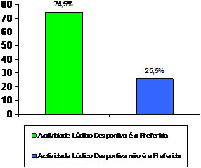Das 231 crianças que praticam actividade lúdico-desportiva, para 74,5% essa actividade é a preferida e que apenas 25,5% não praticam a sua actividade lúdico-desportiva preferida.