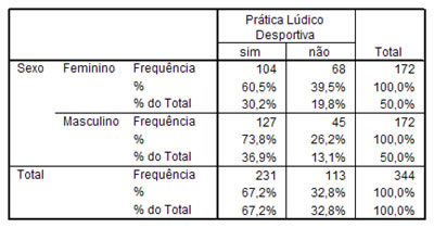 Quadro III - Prática Lúdico-Desportiva em Função do Sexo
