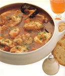 Coza as ervilhas ainda congeladas em água a ferver com um pouco de sal durante cerca de 5 minutos, coe-as, passe-as por água bem fria e deixe-as escorrer. Coza a massa al dente em água fervente abundante temperada com uma pitada de sal, retire do tacho, passe por água fria e deixe escorrer. Descasque os ovos e reduza-os a puré em conjunto com o ketchup, o sumo de laraja e o iogurte, temperando tudo com um pouco de sal e pimenta. Corte o fiambre em cubos. lave, limpe e corte o tomate em rodelas. Misture todos os ingredientes com o molho e deixe ganhar gosto durante cerca de 10 minutos antes de servir.