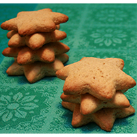 Estender a massa, com cerca de meio centímetro de espessura, com a ajuda de um rolo da massa, cortar as bolachas e levar ao forno quente durante cerca de oito minutos, sobre papel vegetal, tapete de silicone ou tabuleiro enfarinhado.